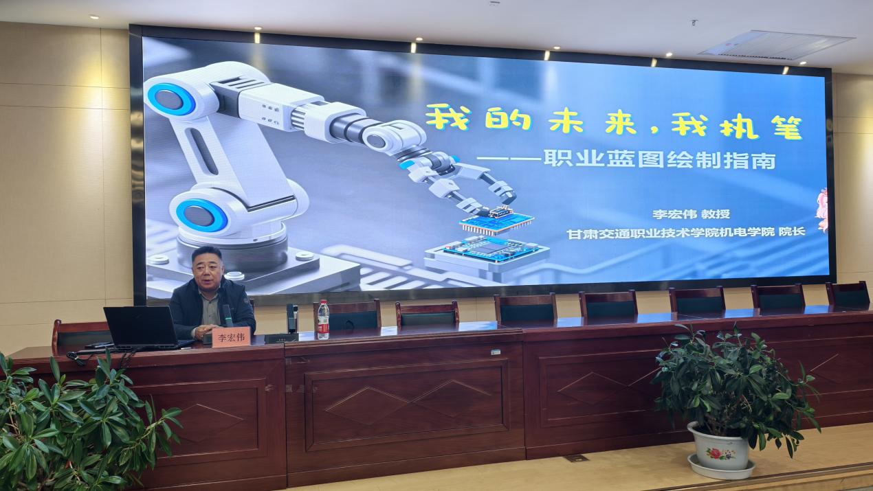 为深入落实学校总工会专题培训要求,紧扣《职业教育提质培优行动计划》部署,助力学生精准对接行业需求、明晰职业路径,20251224,智能装备学院在图书馆会议厅成功举办“我的未来,我执笔——职业蓝图绘制指南”专题讲座。本次活动由学院机电教研室协同承办,特邀甘肃交通职业技术学院机电学院院长李宏伟教授主讲,学院机电一体化技术和工业机器人技术两个专业学生共同参与。